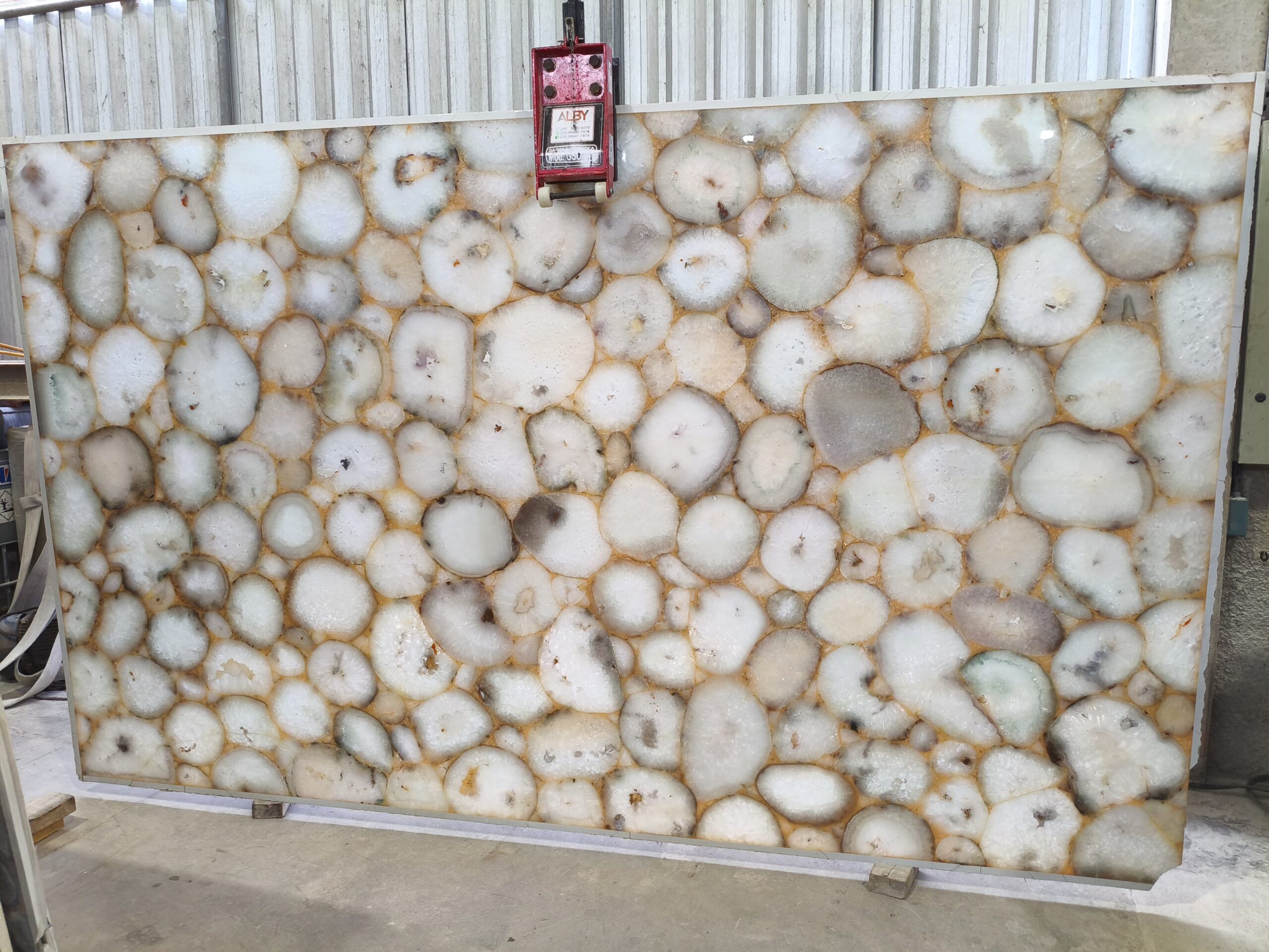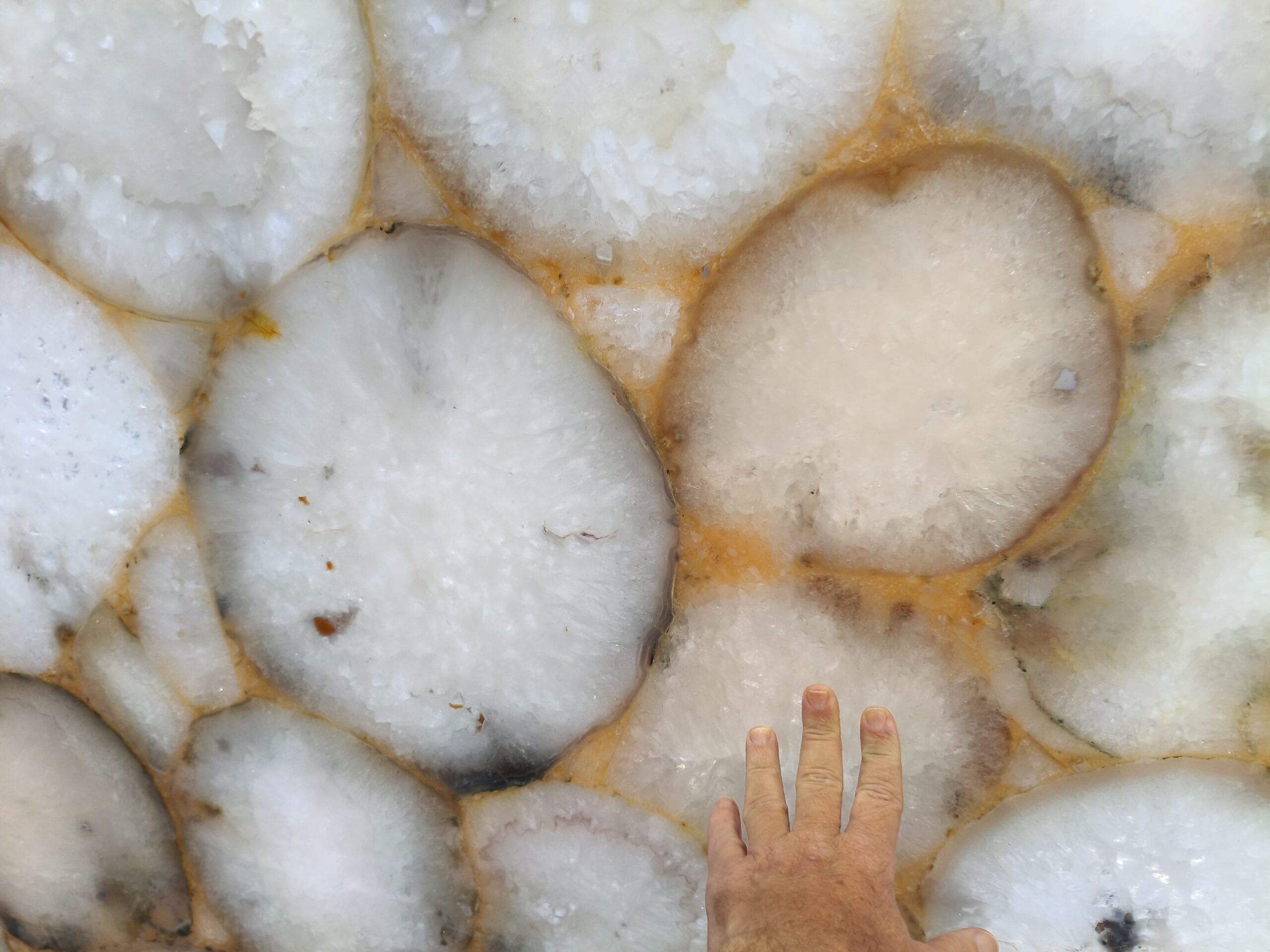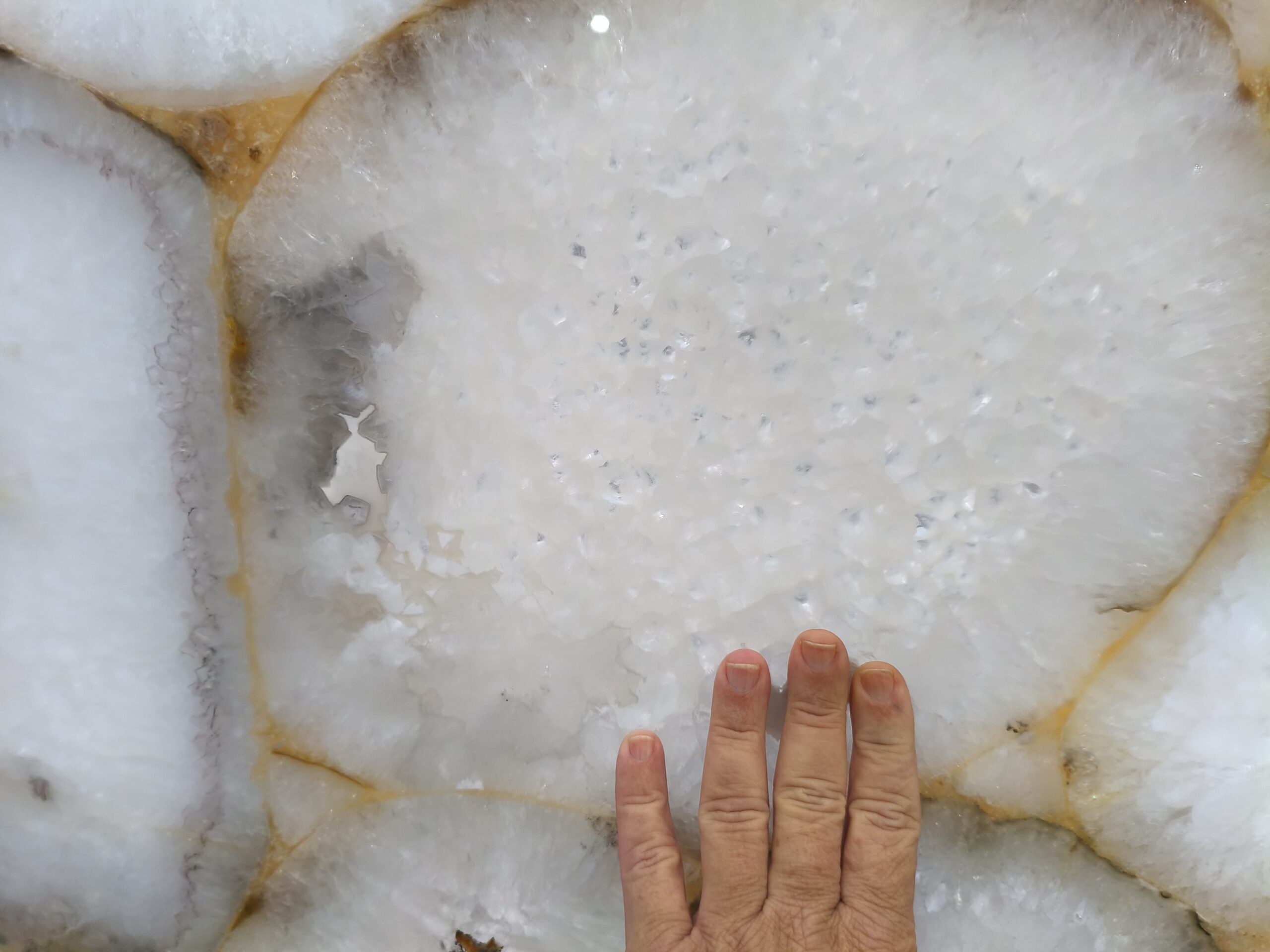 O Mosaico de Ágata Branco Com veios dourados é uma peça sofisticada e exclusiva, composta por fragmentos naturais de ágata cuidadosamente selecionados e polidos. Com seus tons vibrantes de branco, que variam do claro translúcido ao profundo e intenso, este mosaico confere um toque de luxo e elegância a qualquer ambiente. Ideal para revestimentos, painéis, pisos e bancadas decorativas ou detalhes arquitetônicos, ele combina beleza orgânica com acabamento refinado, sendo perfeito para projetos de alto padrão que valorizam a natureza e o design.