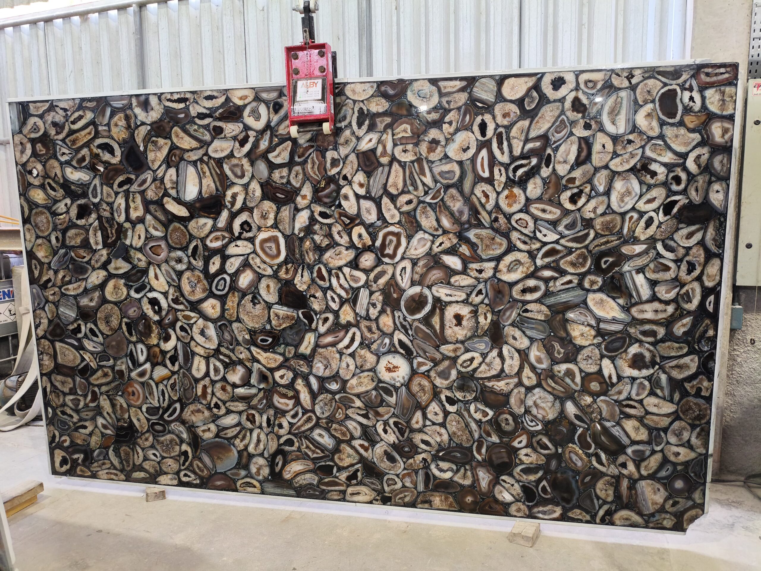 O Mosaico de Ágata Preta é uma peça sofisticada e exclusiva, composta por fragmentos naturais de ágata cuidadosamente selecionados e polidos. Com seus tons vibrantes de preta, que variam do claro translúcido ao profundo e intenso, este mosaico confere um toque de luxo e elegância a qualquer ambiente. Ideal para revestimentos, painéis, pisos e bancadas decorativas ou detalhes arquitetônicos, ele combina beleza orgânica com acabamento refinado, sendo perfeito para projetos de alto padrão que valorizam a natureza e o design.